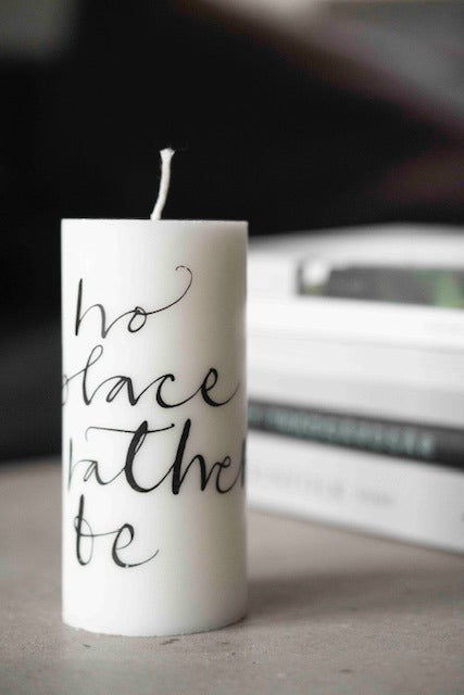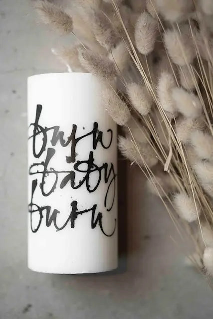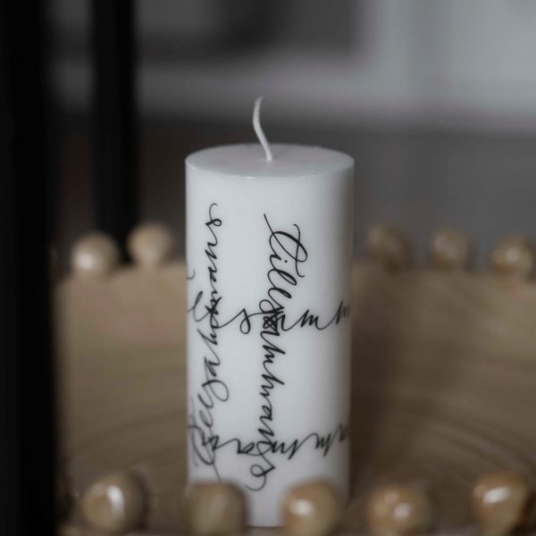 Svanenmärkta Vita Blockljus 7x15cm med design - välj mellan 16 olika alternativ.